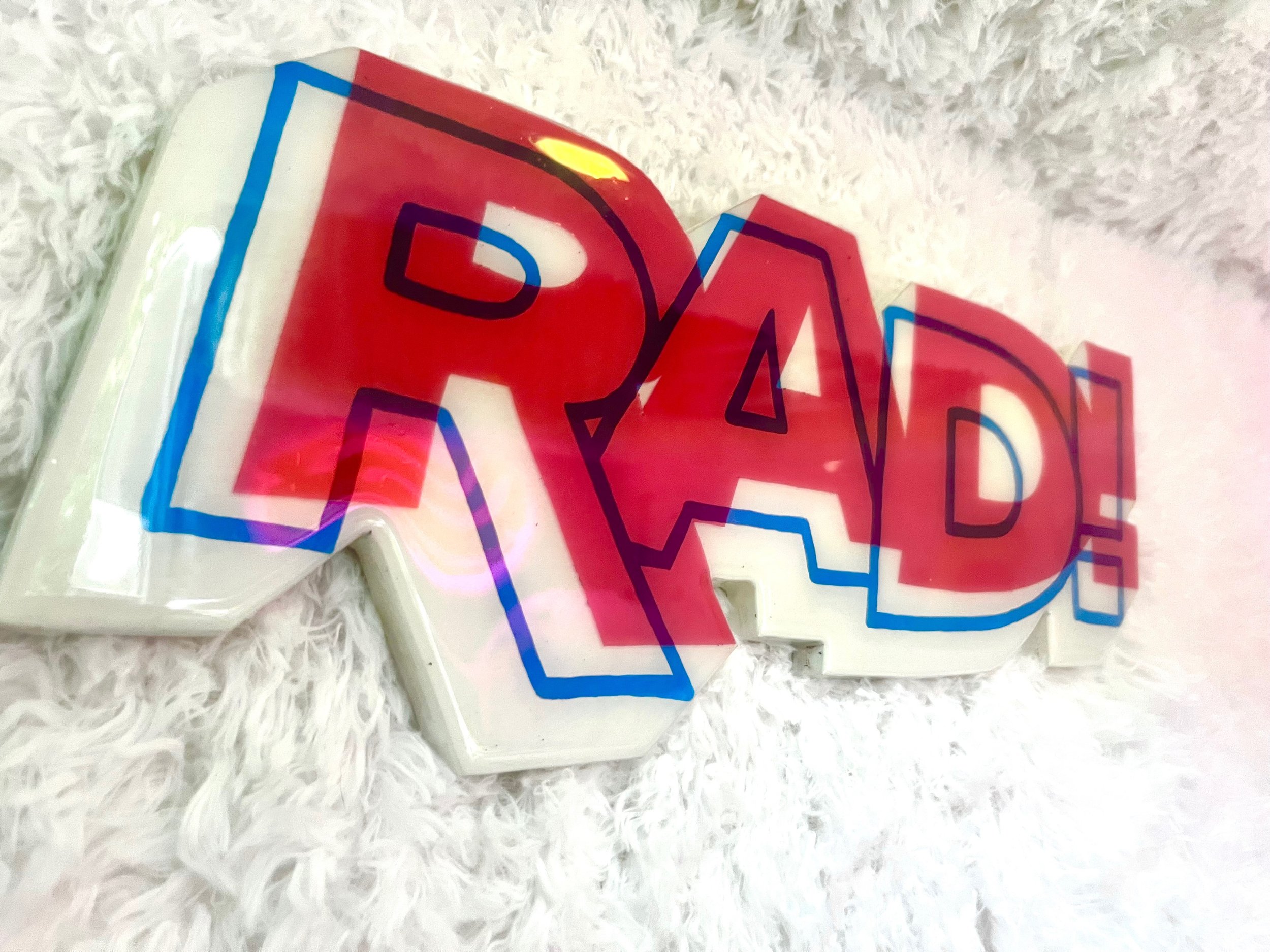 Fine Art Shop › Rad! Image 1 of 2 Image 2 of 2 Rad! $60.00 sold out 7”x16” Acrylic, Vinyl, Resin on Wood Sold Out Added! 7”x16” Acrylic, Vinyl, Resin on Wood